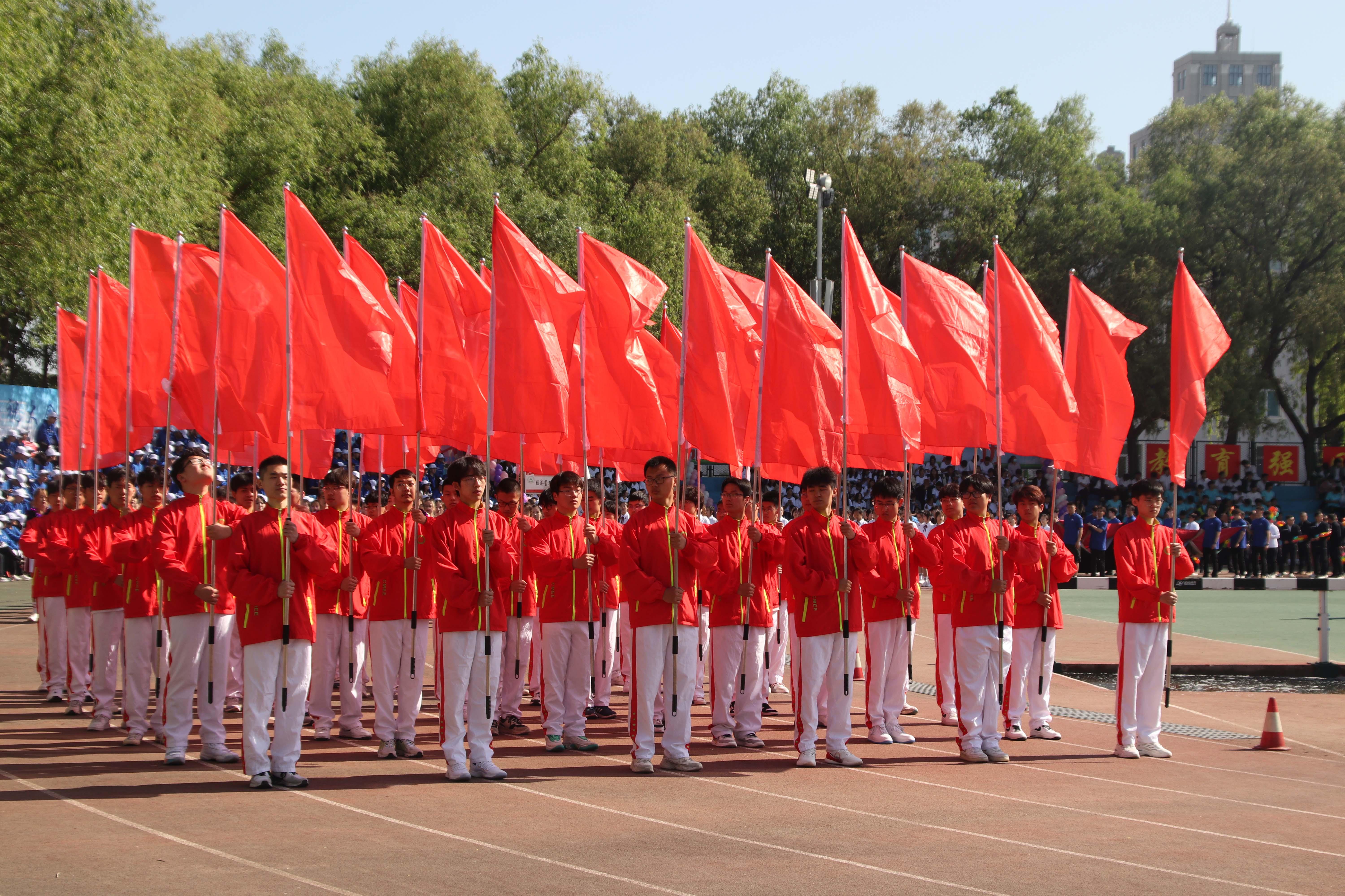 朝阳喷薄欲出,少年整装待发,随着一声令下,昂首阔步而行。五星红旗随风飘扬,胜利歌声多么嘹亮。一双双坚定的眼睛注视着国旗缓缓升起,运动员们以饱满的精神状态来迎接比赛,抒写属于机电学子的辉煌。